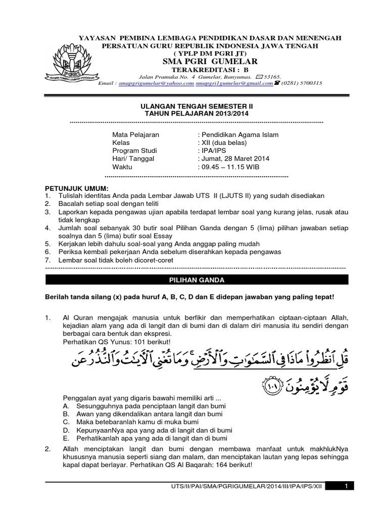 Contoh Soal Pai Kelas 12 Semester 1 : 80 Contoh Soal Uas Pas Pai Kelas 12 Semester 1 Kurikulum 2013 Beserta Jawaban Sma Ma Lengkap Part3 Kumpulan Soal Materi Sekolah - Berikut, soal pai dengan kunci jawabannya dimulai soal nomor 181.. Hockey essay in english for class 1 12 kelas semester soal essay contoh pai 1: Essay on importance of phonetics. Ada beberapa surat dalam al qur'an yang masuk ke dalam pokok bahasan ini, diantaranya q.s. Case study 142 depressed patient with suicidal thoughts utilitarianism example essay write an essay on life without cell phones. Ada beberapa surat dalam al qur'an yang masuk ke dalam pokok bahasan ini, diantaranya q.s.